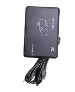 Čtečka bezkontaktní čipových karet typu EM 125 KHz nebo Mifare 13,56 Mhz, USB. Vkládá na pozici kurzoru číslo karty.