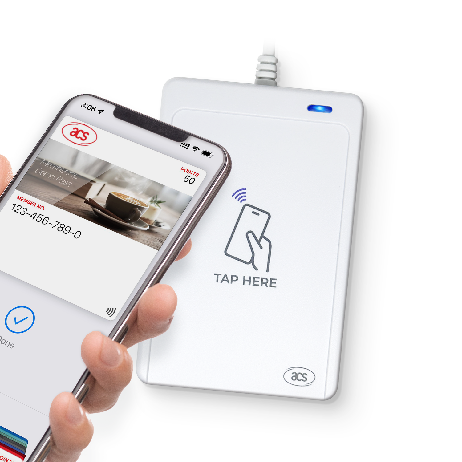 WalletMate II je univerzální čtečka NFC navržená pro vylepšení aplikací pro chytré telefony. Je certifikována pro Apple MFi (VAS ECP1.0 a Access ECP2.0) a Google Smart Tap a bezproblémově podporuje virtuální průkazy, jako jsou věrnostní karty, jízdenky a průkazy totožnosti, v systémech iOS a Android, čímž poskytuje plynulý zážitek bez použití karet s jednoduchou funkcí tap-to-go.